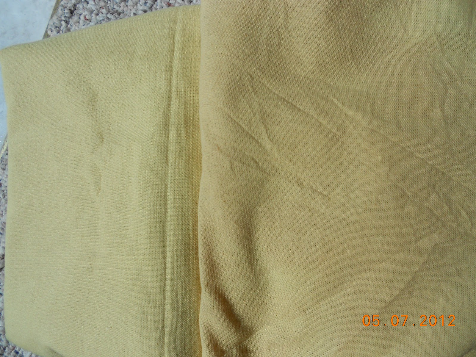 I let it soak for about 6 hours or so. I kind of forget exactly how long. But once I decided it was done, I rinsed it out until it squeezed out clear and let it air dry. Then I gave it a good ironing. The fabric on the left is the before and on the right is the dyed fabric. Capturing the color difference on camera is a bit difficult, but the color turned out pretty well I think.