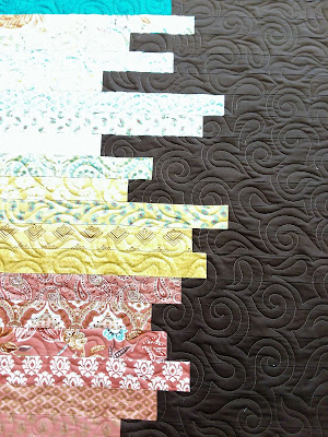 I wanted to quilt something that aided in the horizontal movement this quilt has, so it was just simple echoed curves in each section.