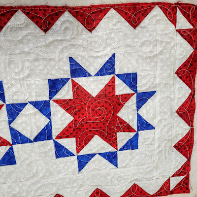 I quilted the cream areas with a fun feather that were all going in the same direction--down.